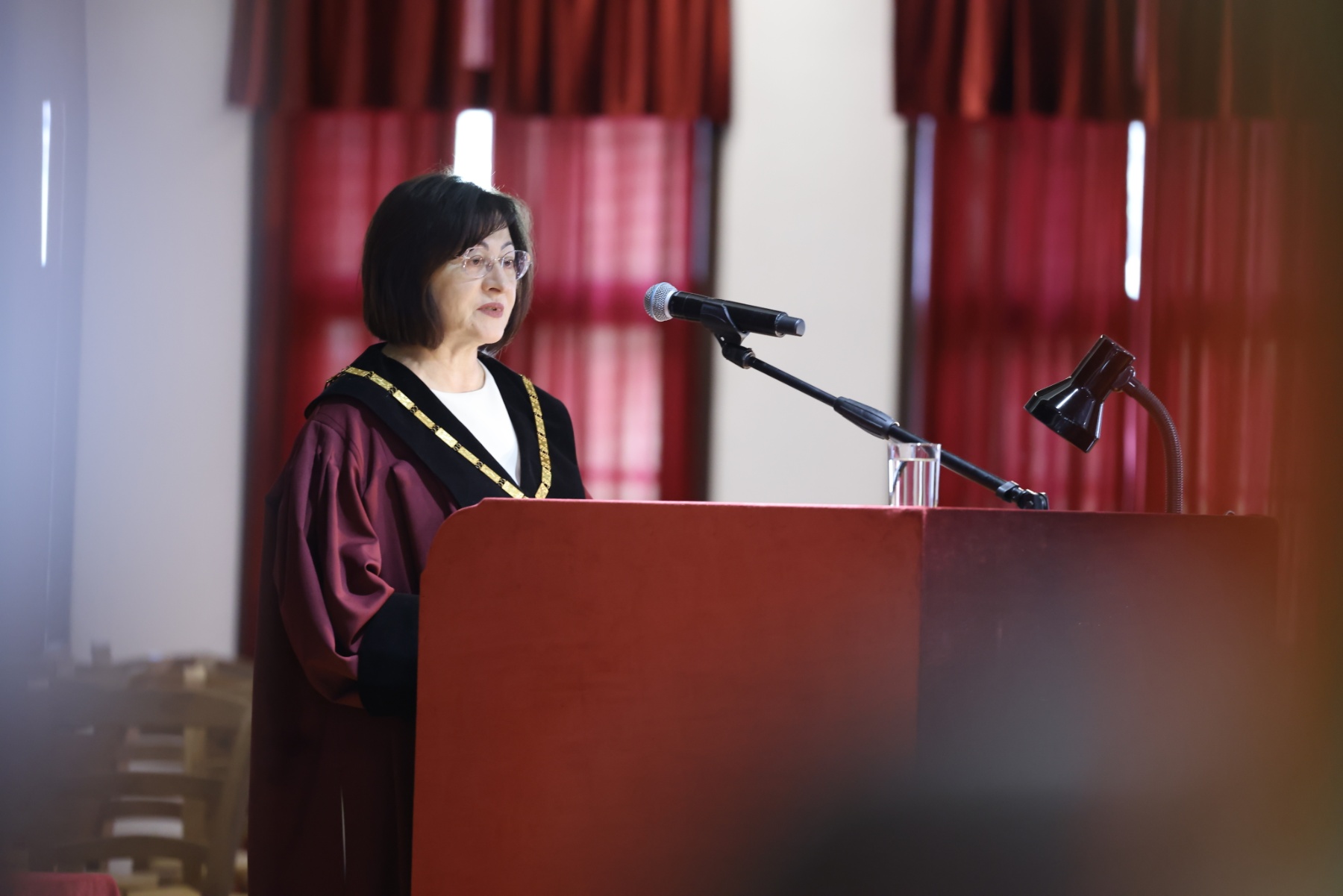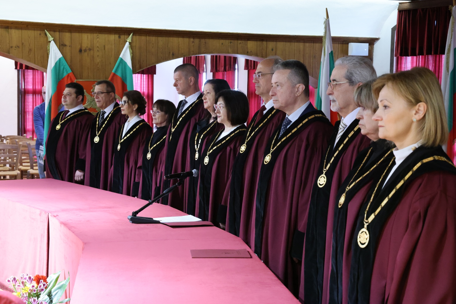В своето приветствие президентът Илияна Йотова поздрави състава на Конституционния съд, като отбеляза, че той е съвременният носител на забележителна държавническа, обществена и правна традиция. „Във време на хронична институционална криза, каквато е днешната, става пределно ясно, че нито един закон, в това число и основният, не могат да функционират без своите пазители. Вече 35 години тази кауза е поверена на Конституционния съд на Република България, призван да отстоява и тълкува духа и философията на българската Конституция“, посочи президентът Йотова.